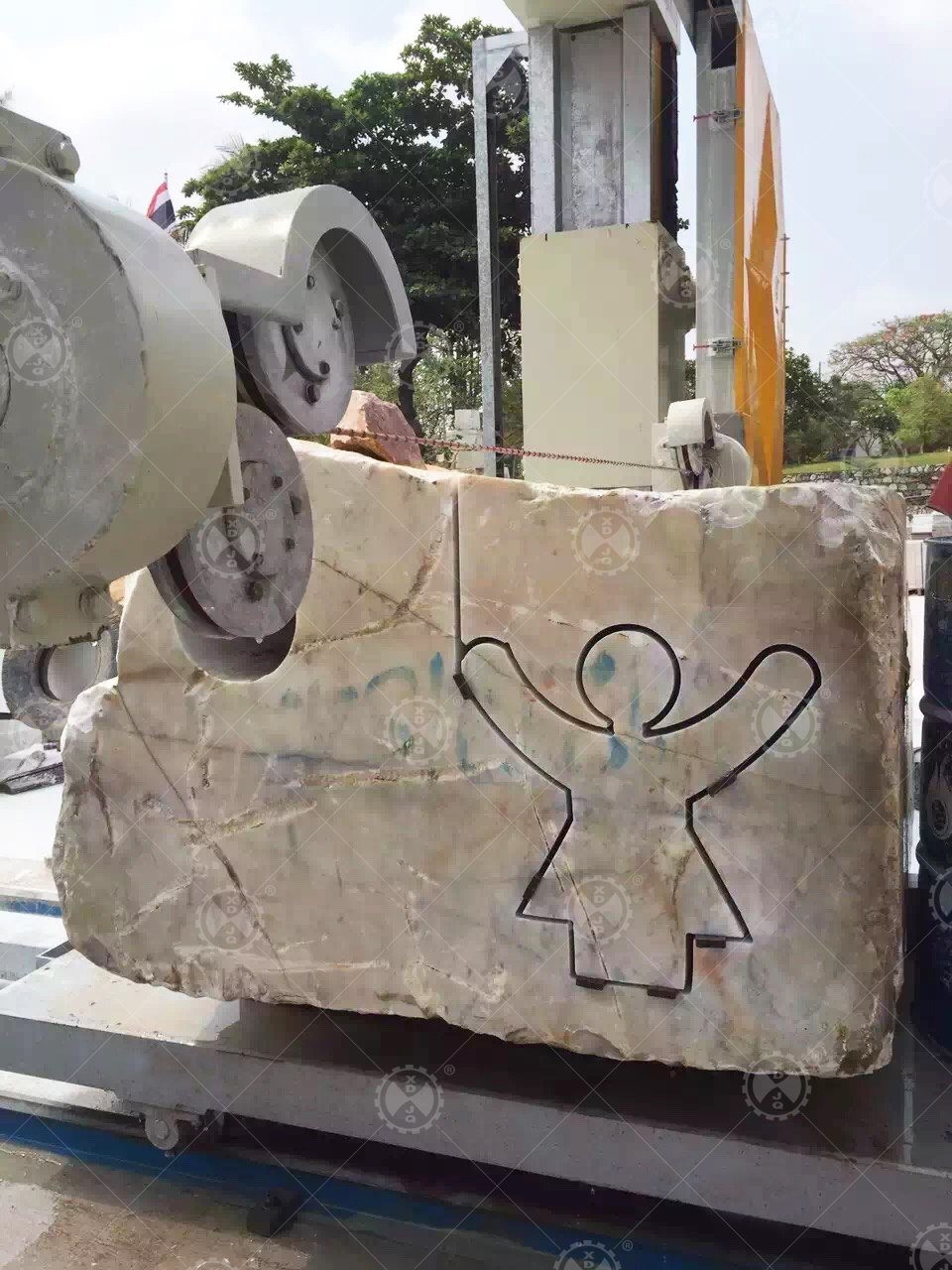 La machine de découpe de pierre à fil diamanté CNC pour marbre et granit CNC-2000/2500/3000 adopte le système CNC, la liaison à quatre axes, qui peut traiter la dalle de pierre circulaire, la colonne romaine, les chiffres, les lettres, les caractères chinois et autres formes conçues.