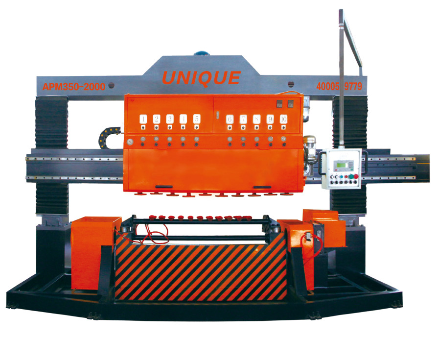 La machine à polir la pierre APM-350-2000 est conçue pour le traitement des dalles en arc de marbre et de granit, atteignant des degrés de polissage de 82-100 pour le granit et de 120 pour l'hydroxyapatite de calcium.